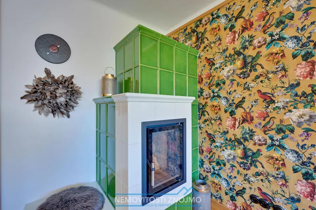 - Stylová kachlová kamna s hypokaustním systémem (náklad přes 500.000,- Kč) + krbová kamna v dalším pokoji