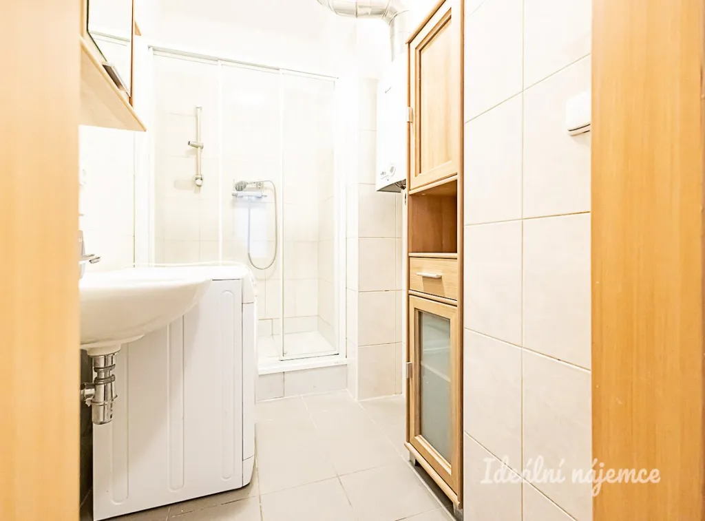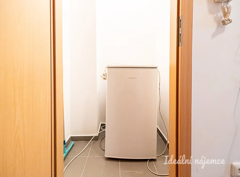 Byt se nachází v 4.patře cihlového domu. Skládá se ze vstupní chodby, ložnice, samostatné toalety, koupelny zařízené sprchovým koutem, umyvadlem a pračkou.