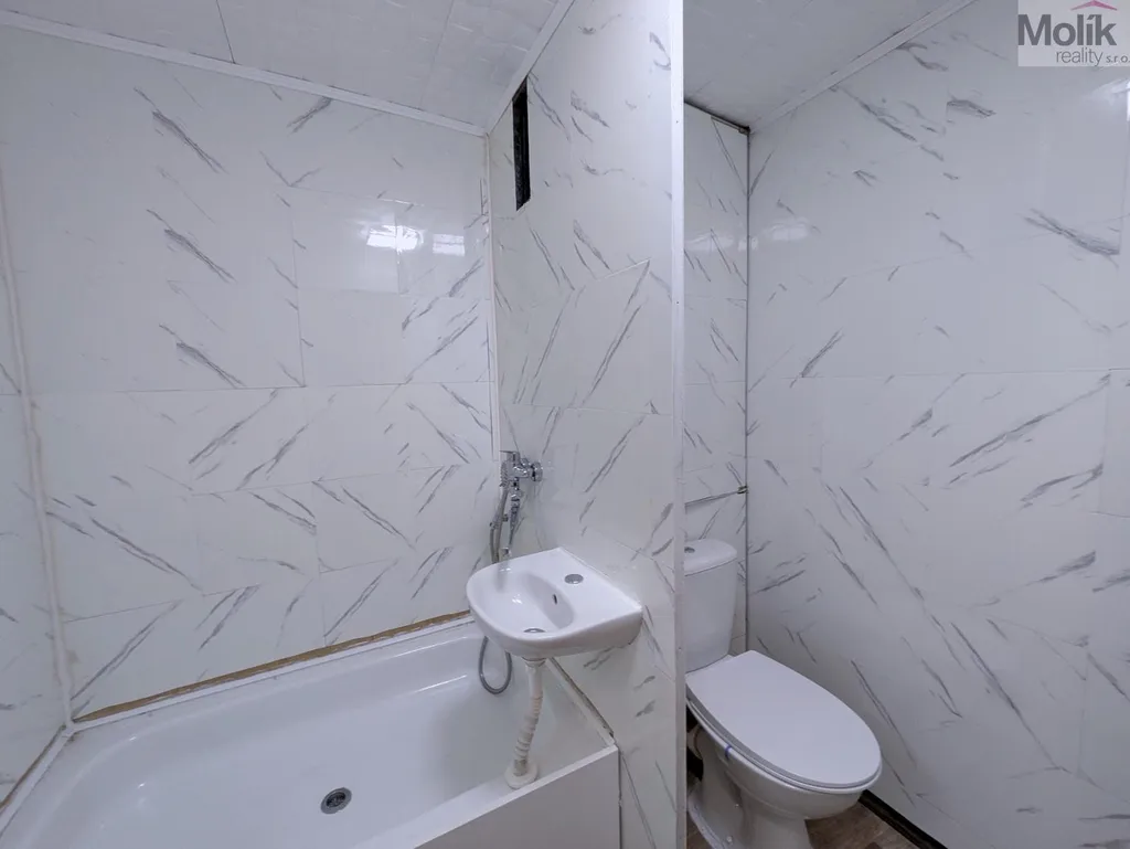Koupelna je v původním, upraveném stavu a nabízí prostor pro pračku (případně i myčku). Velkou výhodou bytu je prostorná lodžie s krásným výhledem na Bořeň.