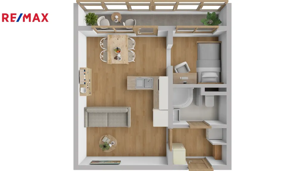 Ve výhradním zastoupení společnosti RE/MAX Future nabízíme k pronájmu velmi pěkný byt o dispozici 1+1 se zasklenou lodžií, který se nachází ve čtvrtém nadzemním podlaží bytového panelového domu s výtahem v ulici Ječná v Hradci Králové. Bytová jednotka o celkové ploše 42 m2 (včetně sklepa a lodžie) a užitné ploše 34 m2 je částečně vybavená. Větší z pokojů je vybaven kuchyňskou linkou s dvouplotýnkovou indukční deskou, mikrovlnnou troubou a digestoří. V menším pokoji instalovány police a závěsné skříňky. Byt je vybaven dále novou lednicí a pračkou. Na podlaze v pokojích je nová vinylová podlaha. Koupelna se sprchovým koutem, toaletou a umyvadlem s koupelnovou skříňkou má zděné jádro. V zádveří je botník a menší odkládací prostor na oblečení. Okna bytové jednotky jsou vybavena žaluziemi a lodžie stínícími roletami. Zasklená lodžie o výměře 6 m2 poskytuje možnost posezení a uložení sezónních věcí. K dispozici sklepní kóje a prostorná kolárna, pozemek za bytovým domem je oplocen.