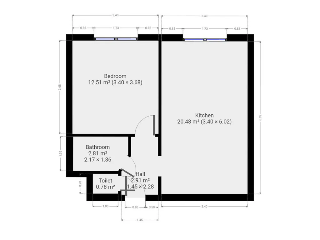 • chodba: 2,5 m²