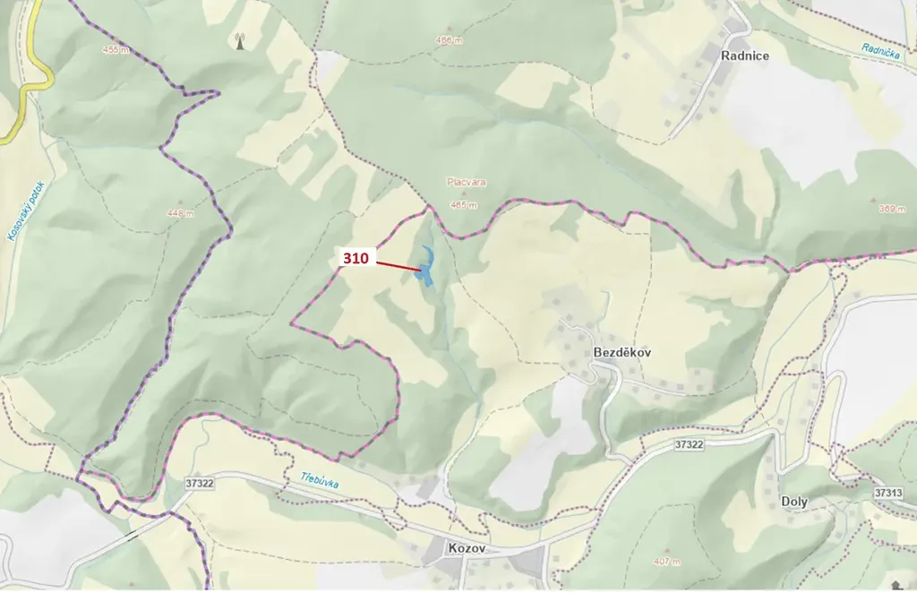 Trvalý travní porost o výměře 4766 m2, parcelní číslo 310, podíl 1/1, katastrální území Bezděkov nad Třebůvkou, obec Bouzov, obec s rozšířenou působností Litovel, okres Olomouc, Olomoucký kraj.