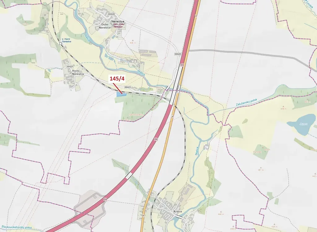 Trvalý travní porost o výměře 2865 m2, parcelní číslo 145/4, podíl 1/1, katastrální území Horní Nerestce, obec Nerestce, obec s rozšířenou působností Písek, okres Písek, Jihočeský kraj.