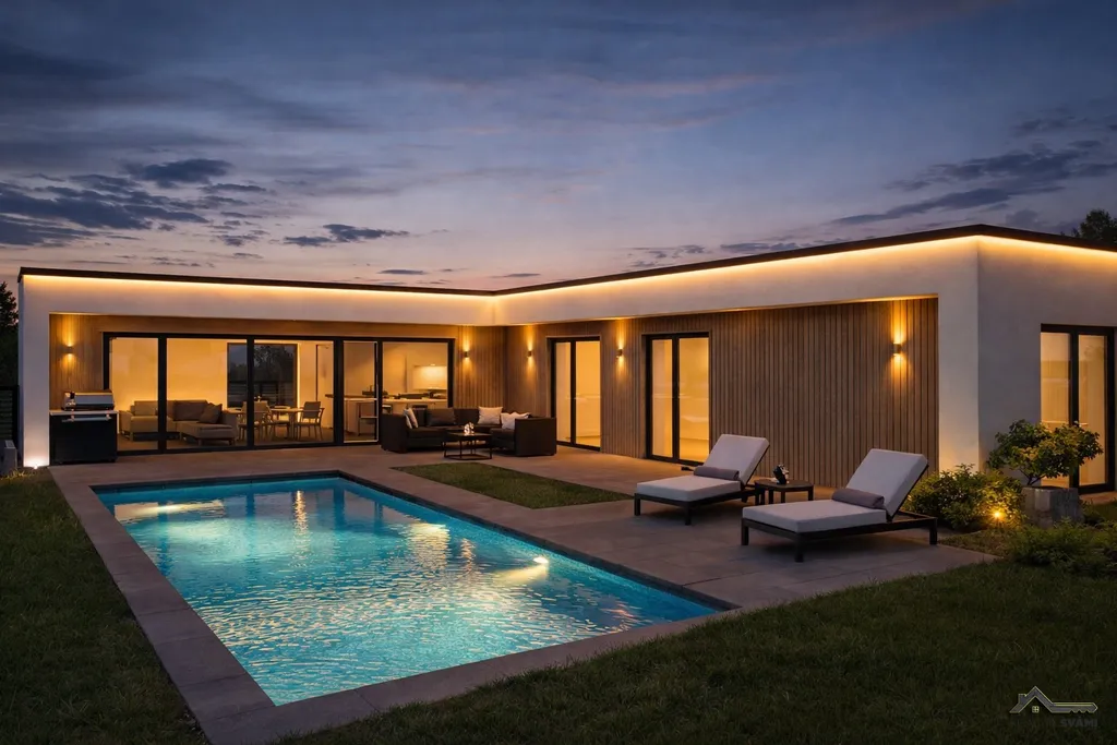 Nabízíme k prodeji novostavbu rodinného domu, ve fázi výstavby, před dokončením kolaudace 2026, umístěnou v klidné části Ostravy Bartovic. Dům disponuje 177m2 užitné plochy, kdy obytnou část tvoří 126m2 a 51m2 terasy, která je otočená na jihozápad, což zajišťuje dostatek slunečního svitu i v pozdějších odpoledních hodinách. Zahrada a umístění terasy nabízí možnost k vybudování bazénu, což sice není součástí projektu, ale je možné po dohodě stavbu bazénu realizovat