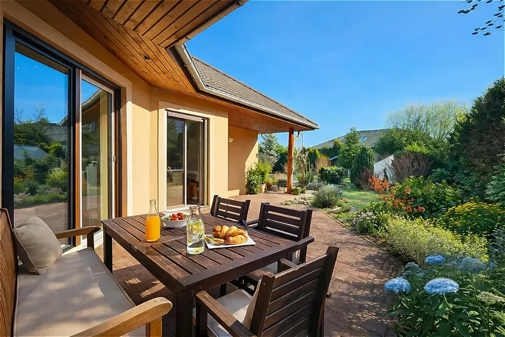 Zahrada poskytuje dostatek soukromí a prostoru pro relaxaci, rodinné posezení i dětské vyžití. Parkování je možné v garáži i před domem.