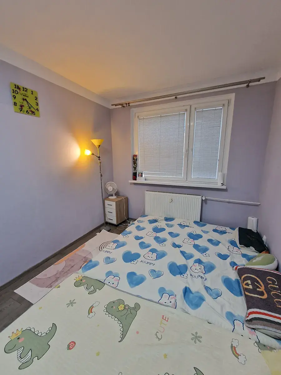 Byt je o velikosti 3+1 s celkovou plochou včetně sklepa 73 m2, a nachází se ve 2 podlaží zatepleného bytového domu. Sklep je o výměře cca 8 m2. Vytápění a ohřev vody je řešeno plynovou kotelnou umístěnou v domě. Byt prošel v minulosti rekonstrukcí (nová elektřina, kuchyňská linka, koupelna, bezpečnostní dveře).