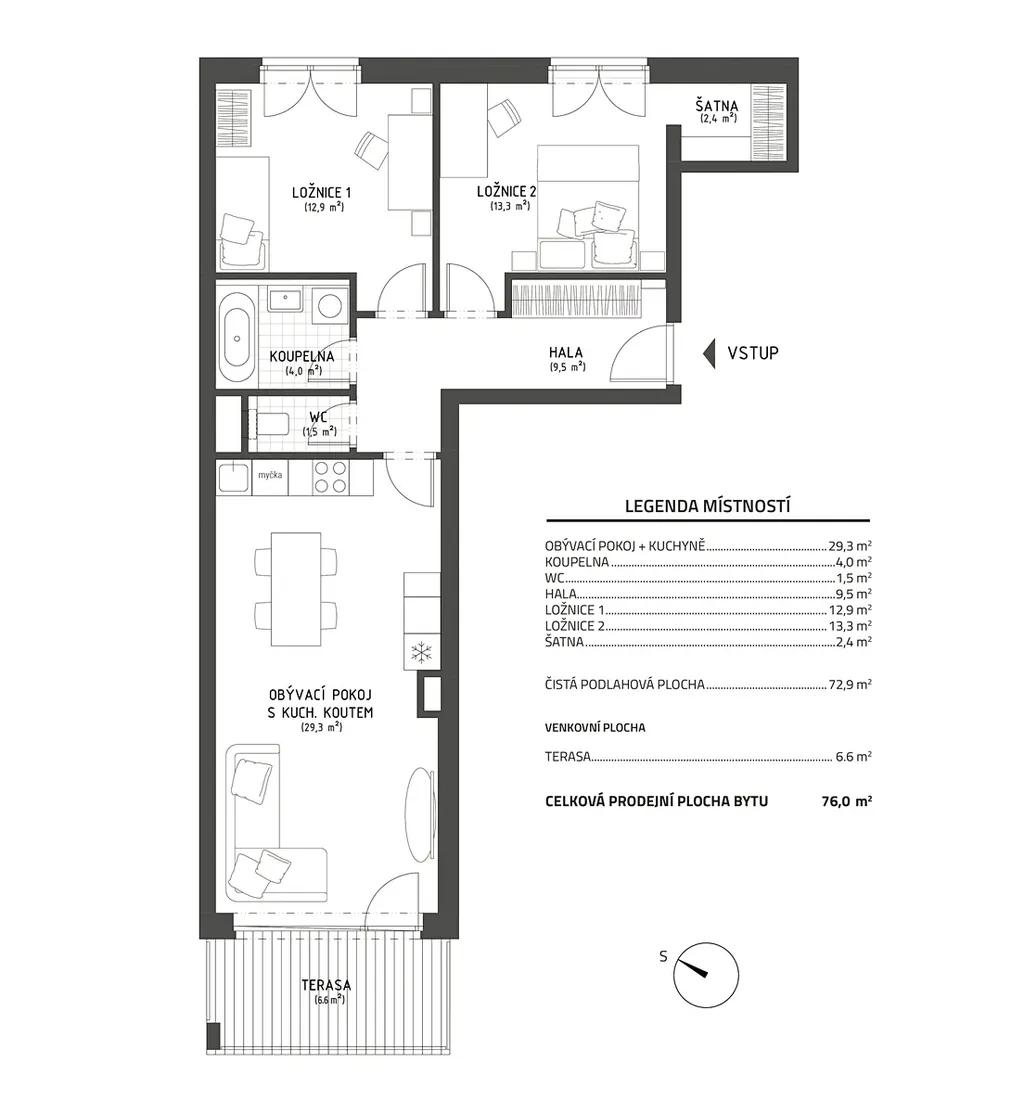 | Užitná plocha | 76 m2 |