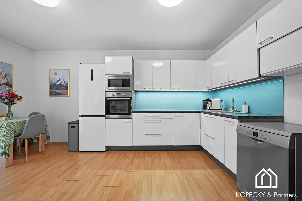 Kuchyňská linka je vybavena spotřebiči, které odpovídají standardu této nemovitosti – myčka nádobí, sklokeramická varná deska, elektrická trouba a mikrovlnná trouba. Na obytnou část navazuje terasa, kde oceníte markýzu na dálkové ovládání. Samozřejmostí je také garáž s vraty na dálkové ovládání. Praktickým bonusem je komora za domem, ideální pro uložení zahradního vybavení, kol, sezónních věcí nebo sportovních potřeb.