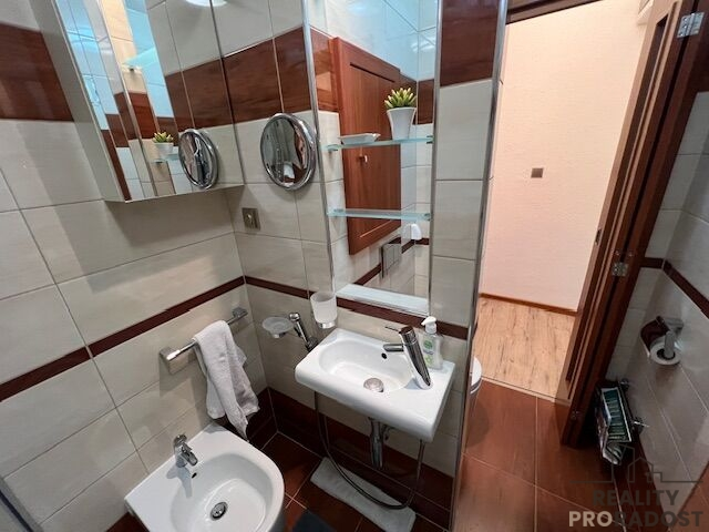 Nabízíme k pronájmu plně vybavený byt po celkové rekonstrukci o velikosti 2+1+šatna+zasklená lodžie. Jedná se nadstandartní byt pro náročného klienta s komfortem vybavenosti bytu k užívání. V bytě je samostatná koupelna se sprchou, bidetem a WC, prostorná chodba s vestavěnými skříněmi, šatna s vestavenými skříněmi, kuchyně s jídelnou včetně veškerých spotřebičů (myčka, pračka, kávovar, lednice, nádobí, včetně nábytku, televize (v obývacím pokoji a v ložnici) atd. Velkou předností je zasklená lodžie a klimatizace v bytě. Jedná se o dlouhodobý pronájem, bez domácích mazlíčků. Byt je určený pro jednotlivce nebo pár. Veškeré vybavení je k dispozici. Platba 3 měsíce předem, nebo kauce 2 měsíce. Byt není určen pro rodinu s dětmi. Bližší informace a prohlídka po telefonické dohodě na uvedeném telefonickém kontaktu.