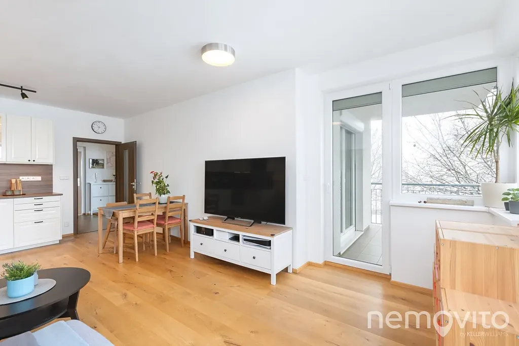 Kompletní rekonstrukce, která proběhla v roce 2021, znamenala především výměnu podlah (dřevěná), novou kuchyni a koupelnu. Byt nyní nevyžaduje žádné investice. Potěší velká prosklená plocha, díky které je velký obývák skutečně světlý (má 26 m2). Výstup na balkon je z obou pokojů, přičemž plocha ložnice je 15 m2. Potěší dohromady 9 m2 skladovacího prostoru. 5 m2 přímo v bytě samotném, 4 m2 ve zděném sklepu.