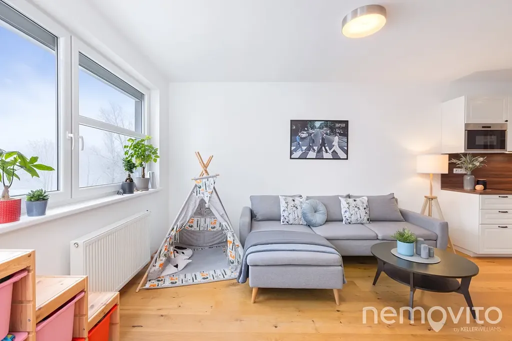 Byt 2+kk s bohatým příslušenstvím prošel v roce 2021 kompletní rekonstrukcí a nadchne především ty, kdo nechtějí byt v základní výbavě. Velký balkon, komora uvnitř bytu, sklep, garážové stání. A k tomu na poměry dnešní výstavby nadstandardní plocha - byt sám o sobě má 57 m2 (3,5 m2 je sklep, 7,6 m2 balkon).