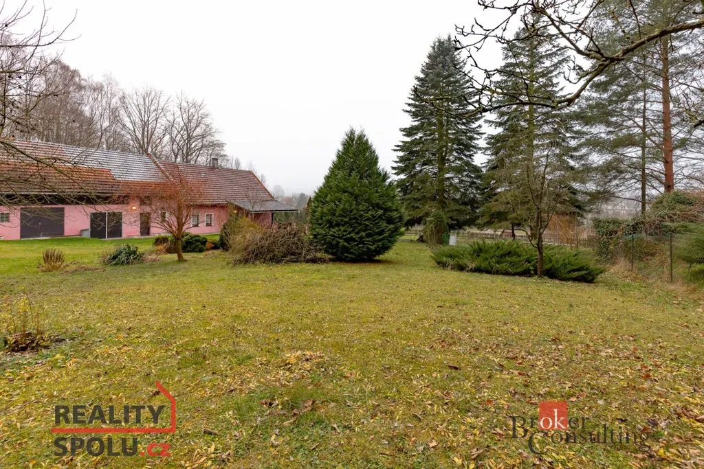 Součástí nemovitosti je zahrada o výměře 2 359 m² se vzrostlými stromy, které poskytují dostatek stínu i soukromí. Za domem navazuje les, takže jedinými „sousedy“ jsou zde především lesní zvířata.