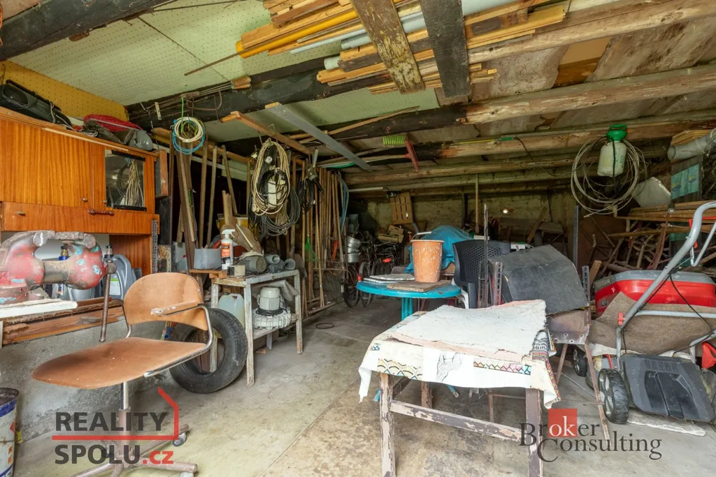 K domu náleží tři kůlny a jedna garáž, které jsou vzájemně průchozí. Díky zachovaným vysokým stropům zde vzniká možnost rozšíření obytné části – jak v přízemí, tak i v patře. Prostory lze využít také ke komerčním účelům.