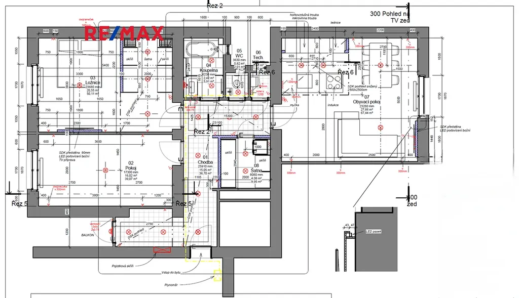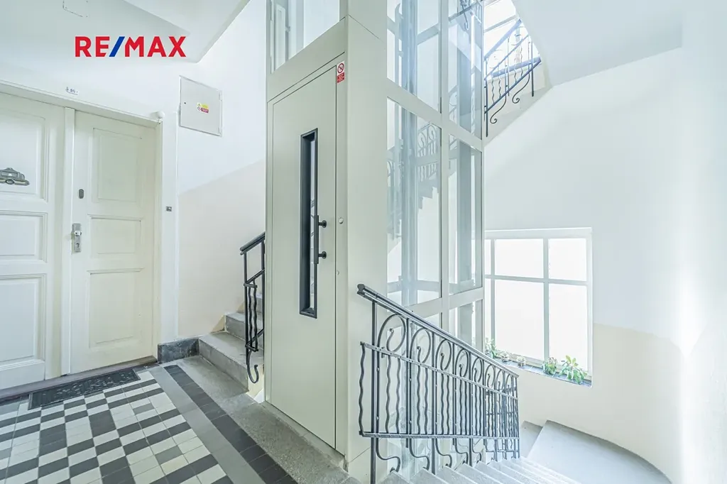 Bytová jednotka v osobním vlastnictví prošla v r. 2018 kompletní, ale velmi citlivou rekonstrukcí s důrazem na zachování ducha nemovitosti a zároveň na propojení původních prvků s moderním bydlením. Renovace dřevěných parketových podlah, interiérových dveří s obložkovými zárubněmi z masivního dřeva, nová avšak dobová dřevěná špaletová okna včetně kování s izolačním trojsklem - vše doplněno moderní kuchyňskou linkou s vestavnými spotřebiči, luxusní koupelnou či klimatizací. Obývací pokoj s kuchyní je orientován na východ s výhledem na Vltavu a Vyšehrad. Okna ložnic pak na západ, do vnitrobloku. Na první pohled Vás zaujme mnoho na míru zhotovených úložných prostor v podobně vestavných skříní, polic a šatníku, včetně průchozí šatny v ložnici. Velkou výhodou je uzavíratelná komora s regálovým systémem, kde je umístěna pračka a sušička. Technická místnost s plynovým kotlem, jenž představuje vlastní zdroj topení a ohřevu TUV je zcela oddělena.