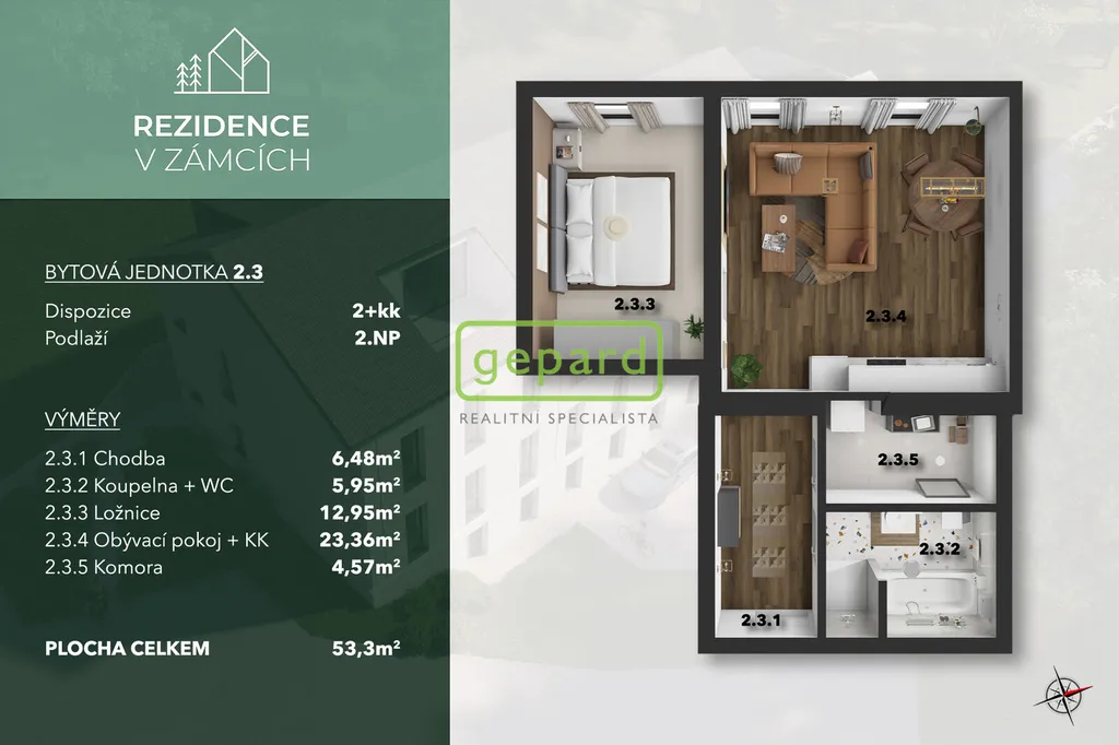 Nízkoenergetický byt (54,6 m2) o dispozici 2+kk v projektu Rezidence V Zámcích, Praha 8, je nyní k prodeji! Dokončení stavebních prací bude v únoru 2026, ale prohlídky jsou možné již teď.