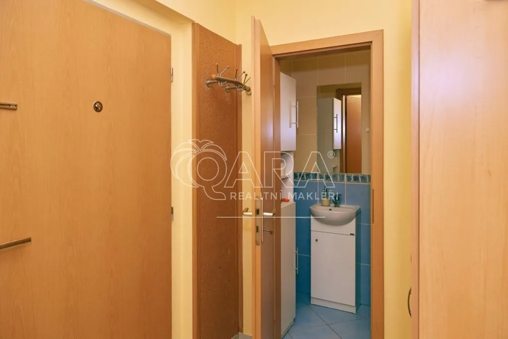 Ze vstupní chodby, kde nalezneme šatní skříň a botník, vcházíme do prostorného obývacího pokoje s kuchyňským koutem. V místnosti je pohodlná sedací souprava, jídelní stůl, obývací stěna s TV a wifi routerem. V kuchyňském koutu je plně vybavené kuchyňská linka (lednice, mrazák, myčka, mikrovlnná trouba atd.). Z obytné místnosti vcházíme do ložnice s manželskou postelí s mnoha úložnými prostory na stěně za postelí. Přímo na ložnici navazuje samostatná prostorná koupelna s vanou a pračkou. Dostatek světla a slunce zajistí v obou místnostech velká francouzská okna, která jsou orientována na jih.