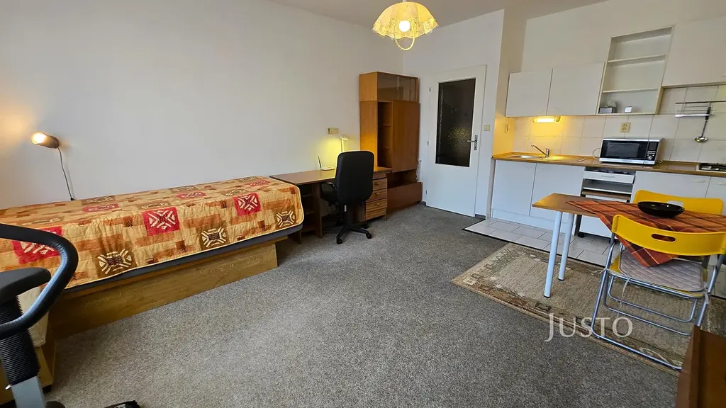 V zastoupení majitele nabízíme pronájem bytu 1+KK v ulici Harantova. Byt se nachází ve 3.NP s výtahem. Při vstupu do bytu je předsíň, ze které je vstup do koupelny a do pokoje, kde je kuchyňský kout a obývací část. V předsíni je umístěna šatní skříň. V koupelně je vana, WC, umyvadlo, pračka. V pokoji bude zůstávat kuchyňská linka, lednice a veškeré vybavení kromě televize. Byt je tichý, teplý a slunný. Byt je orientován do ulice, plastová okna s izolačním trojsklem byla instalována v roce 2023, což přispívá k výborným tepelně-izolačním vlastnostem. Jedná se o moderní dům dostavěný po roce 2000 jako součást uliční zástavby. Celý byt je ve velmi dobrém, udržovaném stavu.