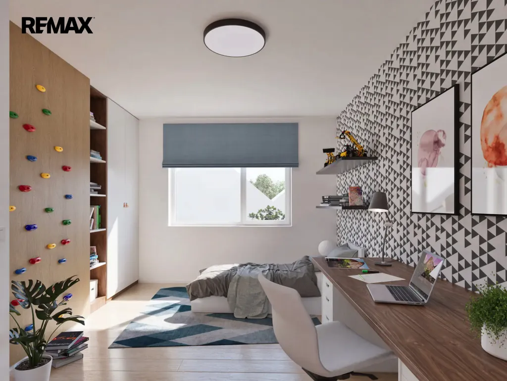 V přízemí domu bude vstupní chodba se schodištěm do patra, kde při vstupu budete mít po pravé straně koupelnu se sprchovým koutem a WC, na levé straně bude výklenek pro vestavěnou šatní skříň. Dále menší pokoj vhodný jako ložnice nebo pracovna. Rovně z chodby projdete do velkého obývacího pokoje, který bude spolu s velkým kuchyňským koutem a jídelnou dominantou celého domu. Z tohoto obývacího pokoje bude vstup na zahradu s terasou, kde můžete umístit pergolu. Zahrada bude oplocená se zadní brankou pro pěší vstup. V chodbě pod schodištěm budete mít úložný prostor a v patře na vás budou čekat tři pokoje a hlavní koupelna s vanou a WC. Jako bonus vám zhotovíme plnohodnotnou velkou místnost v podkroví, kam povede schodiště. Podkrovní pokoj bude mít všechny náležitosti jako jsou střešní okna, podlahovou krytinu, sádrokartonové podhledy i rozvody elektřiny. Tento podkrovní prostor můžete využít jako ložnici, pracovnu nebo hernu. Velkoformátová okna zajistí dostatek přirozeného světla a příprava na venkovní žaluzie umožní regulaci teploty v interiéru. Před domem budou dvě parkovací stání.