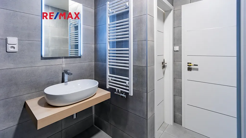 Vytápění vlastním plynovým kotlem umístěným v koupelně s možností komfortního automatického ovládání. V koupelně i na toaletě jsou použity kvalitní obklady a dlažby stejně jako zařizovací předměty. Celý byt využívá komfortu podlahového vytápění.