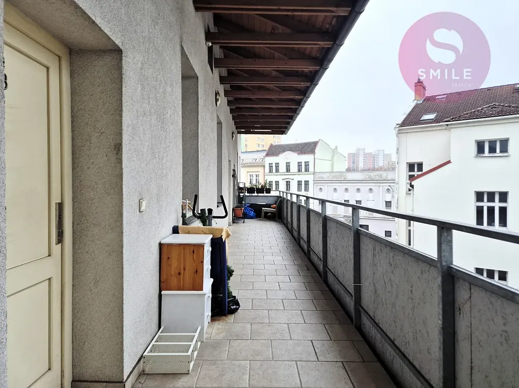 Vstup do bytu je přes pavlač, což dodává bydlení osobitý charakter.