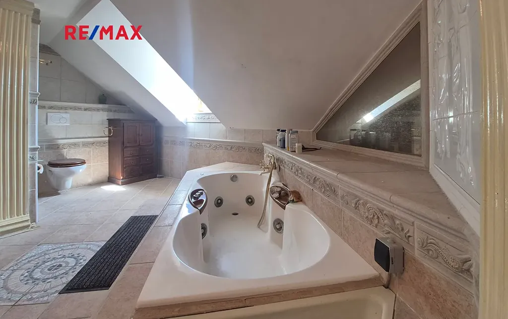 Nad celou obytnou částí a bazénem je připravené podkroví na využití dalších obyt. místností. Místnosti jsou již zateplené, s rozvody elektřiny, se stěnami, v některých je již hotová podlaha. Dokončená je část se soc. zař.: masážní vana, WC a dvě umyvadla a plně funkční krb. Celý pozemek je oplocený a nabízí naprosté soukromí.