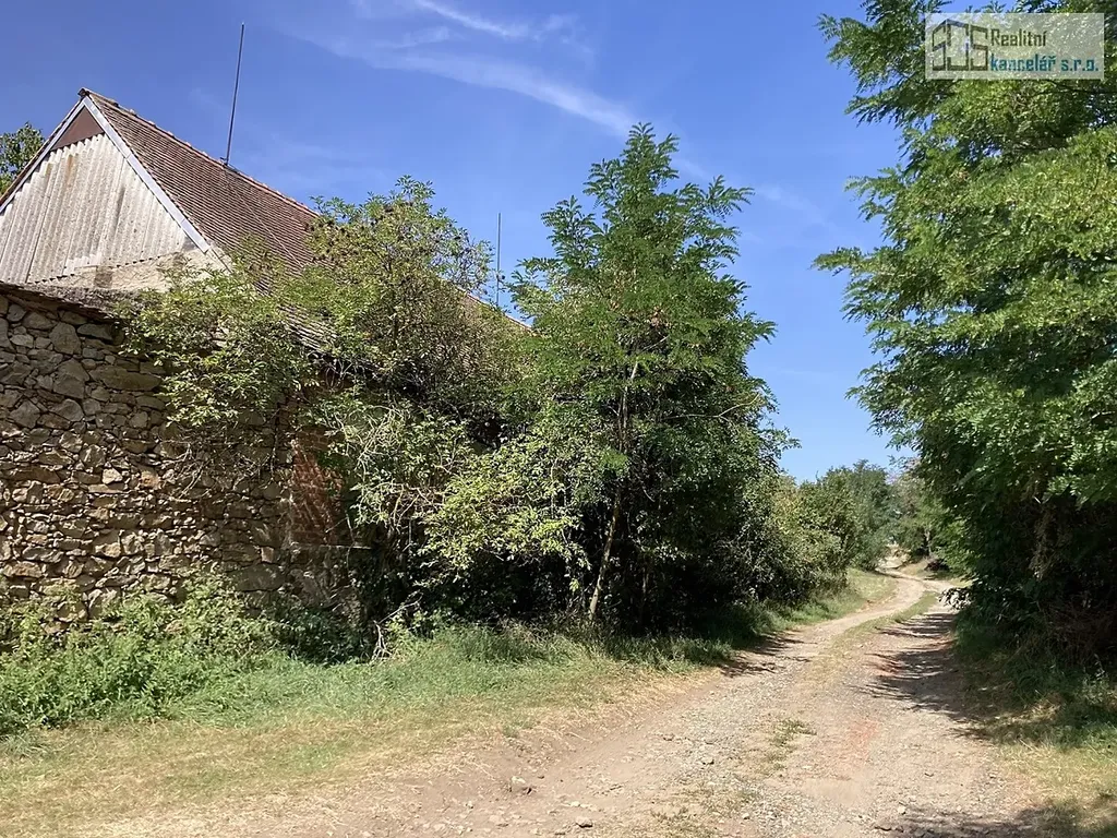Pěkný rovinatý pozemek (3.024 m²) v obci Medlice s venkovskou usedlostí k demolici – zadní přístup, stodola, 16 km od Dukovan.