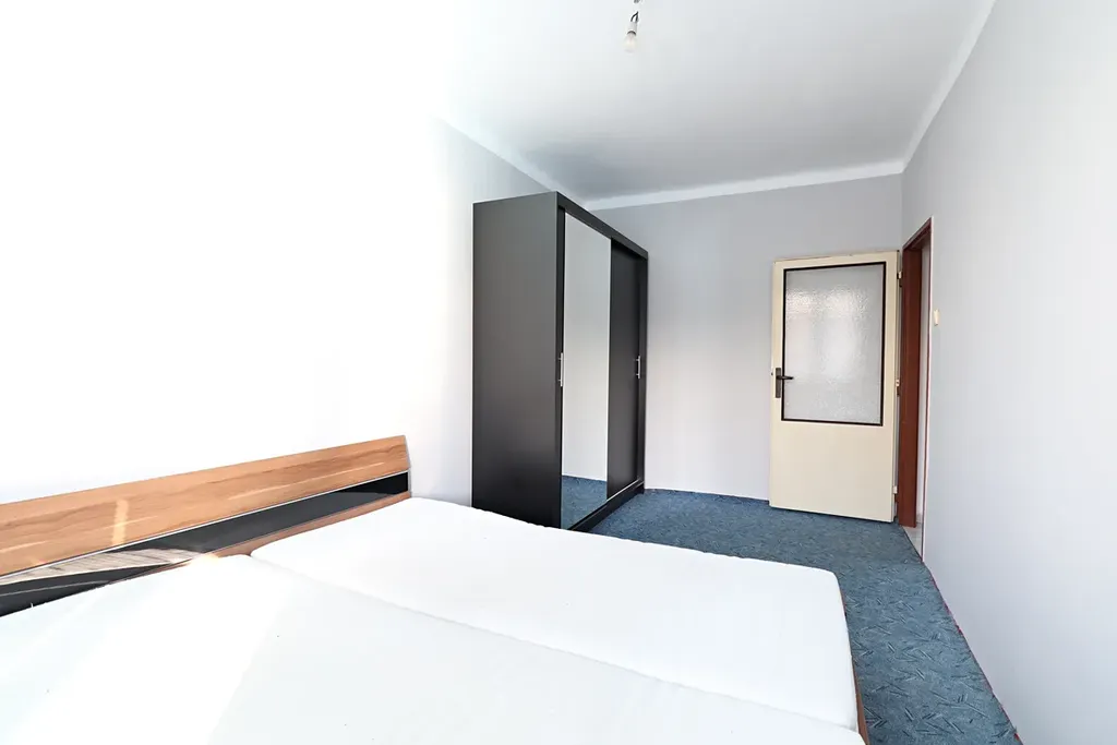 Nabízíme k prodeji bytovou jednotku 2+kk, která se nachází ve 2 nadzemním podlaží cihlového domu bez výtahu. Byt je tvořen zádveřím, že které je vstup do ložnice, dále na WC, do koupelny a do obývacího pokoje, ze kterého je vstup do kuchyně. K bytu náleží dvě sklepní kóje. Bytová jednotka je vytápěna ústředním topením s vlastním elektrokotlem, ohřev vody zajišťuje el.bojler. Okna plastová.