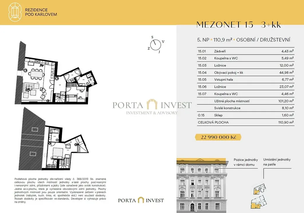 Hledáte bydlení, které převyšuje běžné standardy a nabízí skutečně nadstandardní prostor pro život? Objevte unikátní mezonetový byt 3+kk o rozloze 109,3 m² v prestižní Rezidenci Pod Karlovem na Vinohradech.