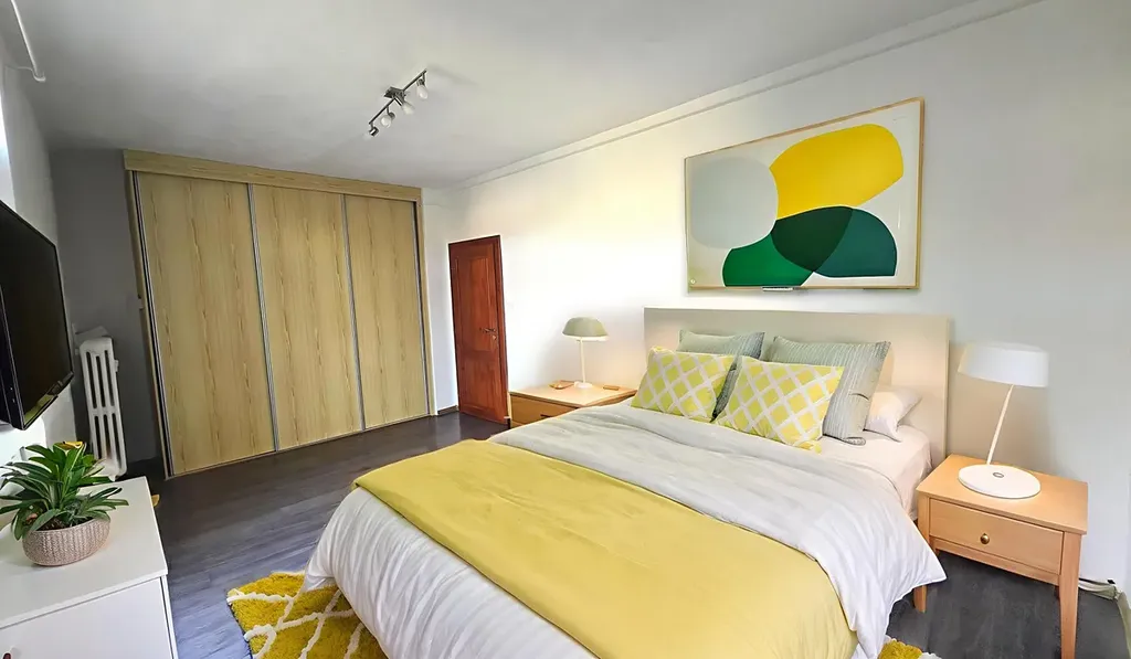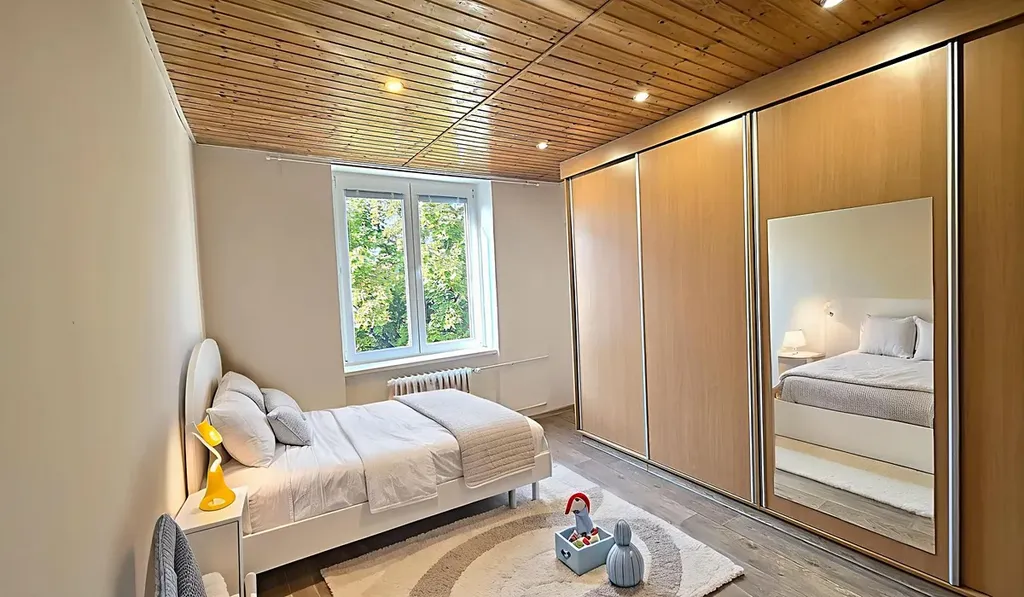 Byt je nezařízený, což umožňuje novým nájemcům zařídit si interiér podle vlastního stylu. K dispozici je pouze velká šatní skříň, která poskytuje dostatek úložného prostoru.