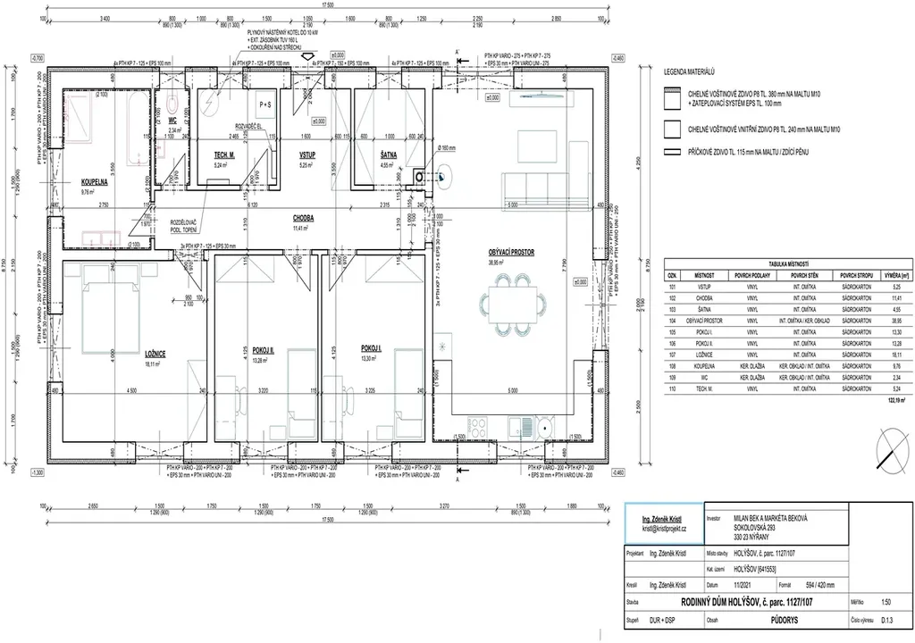 - čistá užitná plocha obytných místností je 122,2 m2