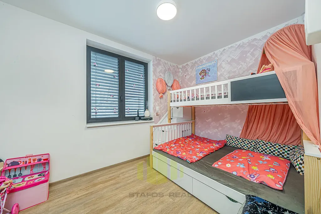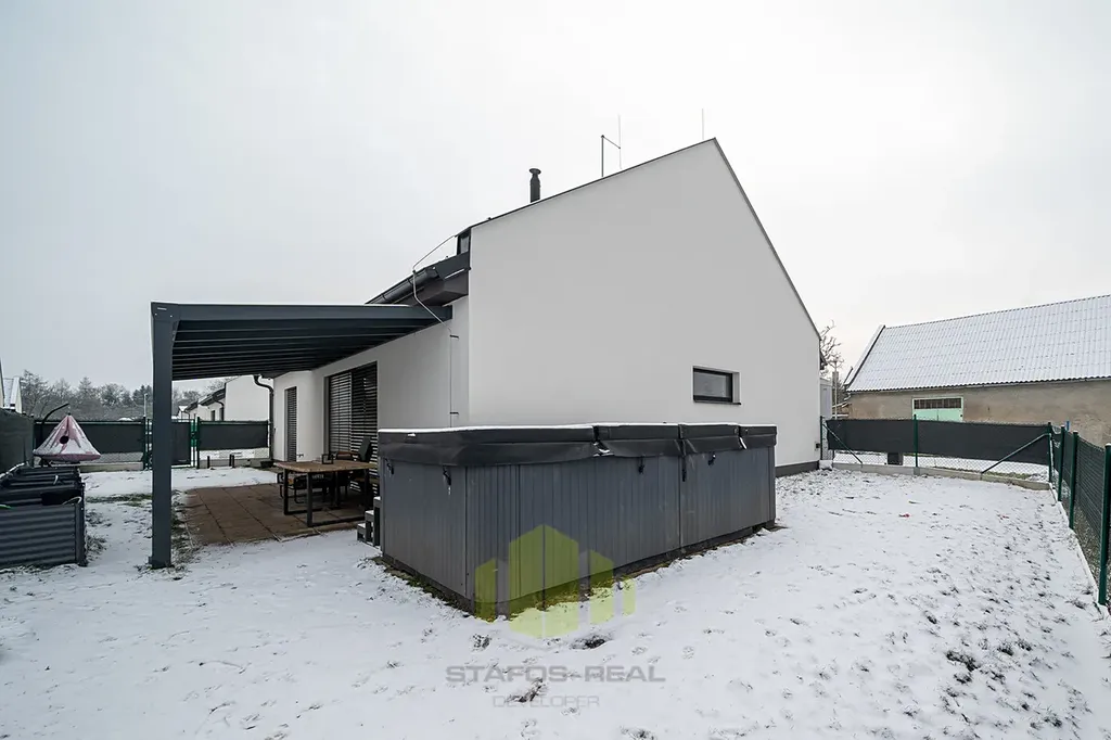 Rodinný dům nabízí dispozici 4+kk se zastavěnou plochou 153 m² (užitná plocha 127 m²) na pozemku o výměře 455 m². Praktické řešení interiéru zahrnuje zádveří, prostorný obývací pokoj s velkorysou moderní kuchyní, který má přímý vstup na terasu přes velkoformátový HS portál, ložnici s přístupem na zahradu, dva dětské pokoje, koupelnu, samostatné WC a garáž. Součástí domu je také pochozí podkroví pro skladování a velká terasa přizpůsobená k relaxaci či grilování. Dům dále nabízí zahradu s dostatkem prostoru pro odpočinek nebo dětské hry, kde je umístěn nový vířivý bazén značky HANSCRAFT.