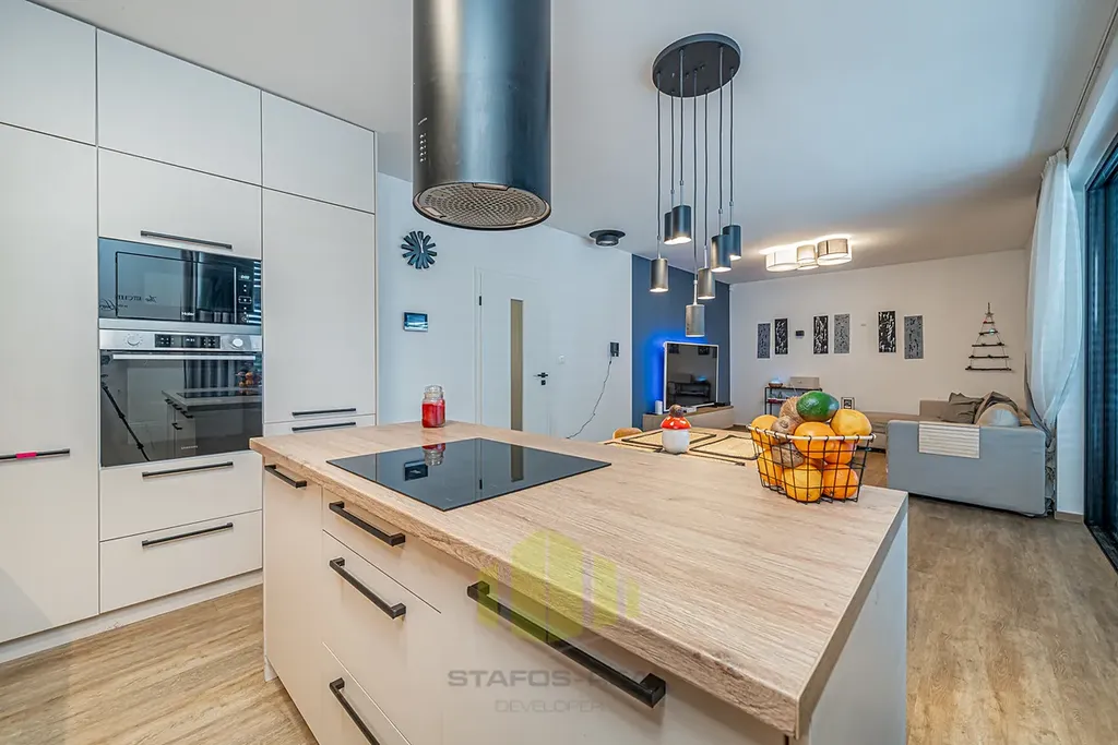 Hledáte moderní, komfortní bydlení v klidném prostředí obklopeném přírodou, a přitom s výbornou dostupností do okolních měst? Tento nadstandardně vybavený rodinný dům typu bungalov v obci Ústín splní vaše očekávání. Novostavba zkolaudovaná v roce 2023 se nachází v exkluzivní lokalitě "Za humny", mimo hlavní komunikaci, a nabízí nádherné výhledy na Jeseníky a Velký Kosíř. Díky omezené možnosti další výstavby se jedná o jedinečnou příležitost pro bydlení v klidu a soukromí. Obec se nachází mimo záplavové území a disponuje výbornou dopravní dostupností – MHD i autobusová zastávka jsou vzdálené jen 2 minuty chůze.