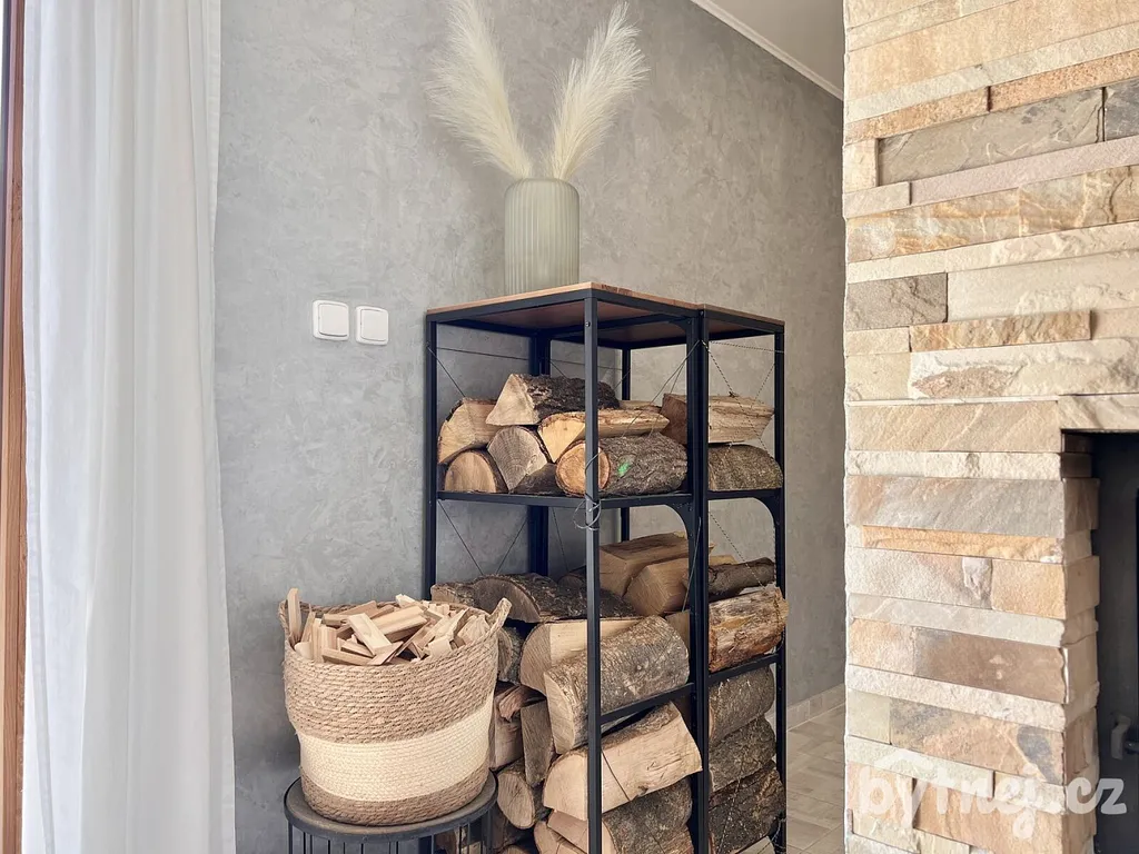 Přes přechodná období a velkou část zimy stačí topit klimatizací, v zimě je možnost přitopit si v krbu a užít si hřejivou atmosféru praskajícího ohně a teplo domova. Z krbu jsou vyvedené průduchy do všech místností.