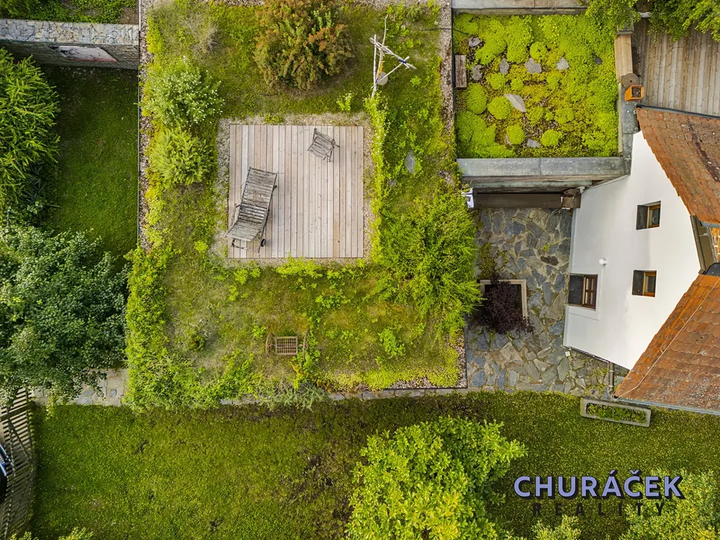 Součástí nemovitosti je i samostatně stojící objekt, který nyní slouží jako dílna, ale nabízí široké možnosti využití – může se proměnit v ateliér, wellness, garáž nebo samostatnou obytnou jednotku 2+kk. Na střeše tohoto objektu je navíc vytvořen relaxační prostor, ideální pro klidné večery nebo ranní kávu.