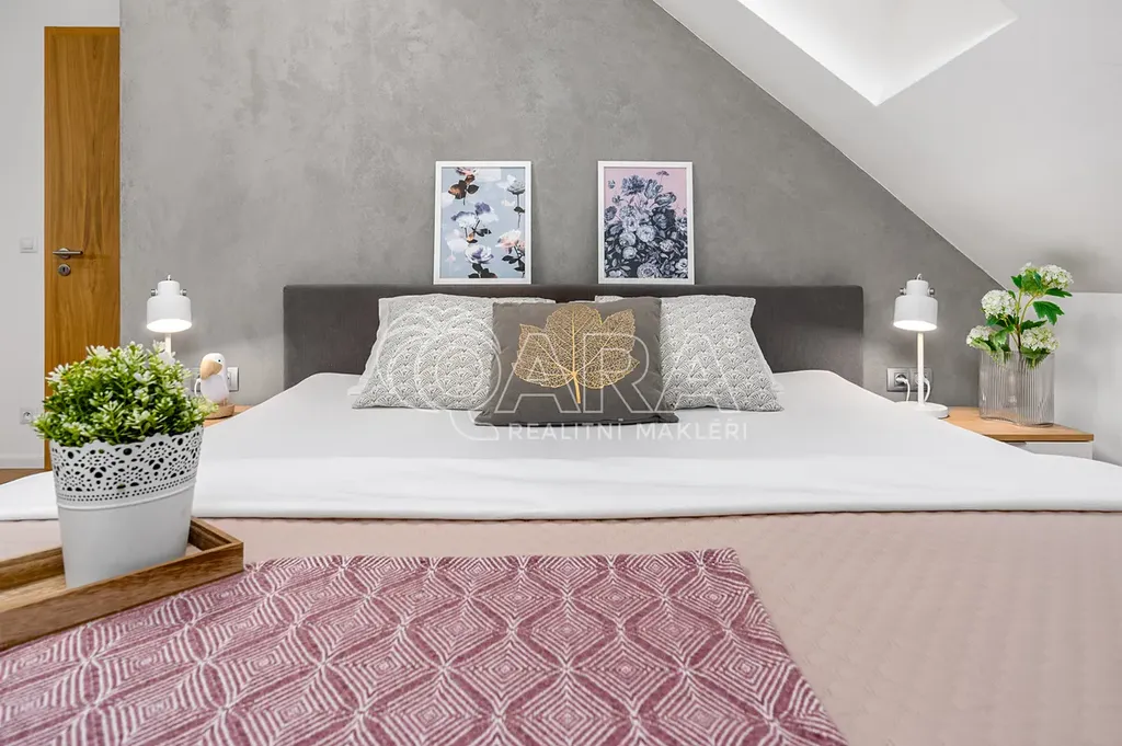 Na první pohled vás zaujme právě jeho otevřený prostor a příjemný charakter. To vše podporují citlivě zvolené materiály a důraz na moderní technologie s prvky chytré domácnosti. S ohledem na umístění v posledním patře se šikminami byl také kladen důraz na praktické řešení úložných prostor, které funkčně i esteticky dotváří praktičnost celého bytu.