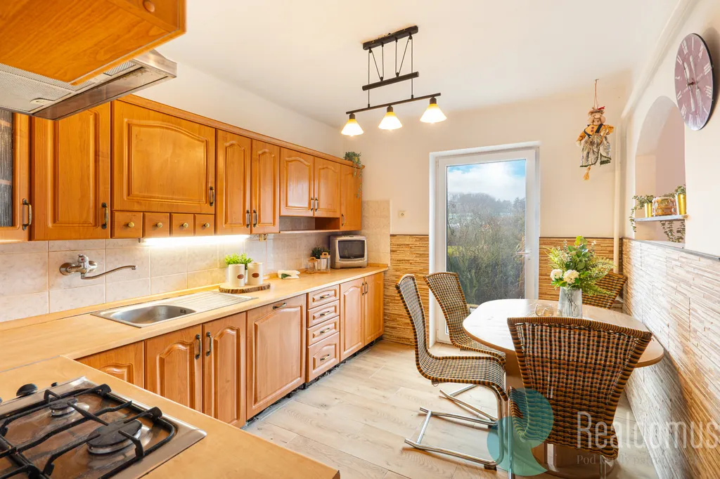 - velkou kuchyň prakticky propojenou s obývacím pokojem a vchodem na terasu.