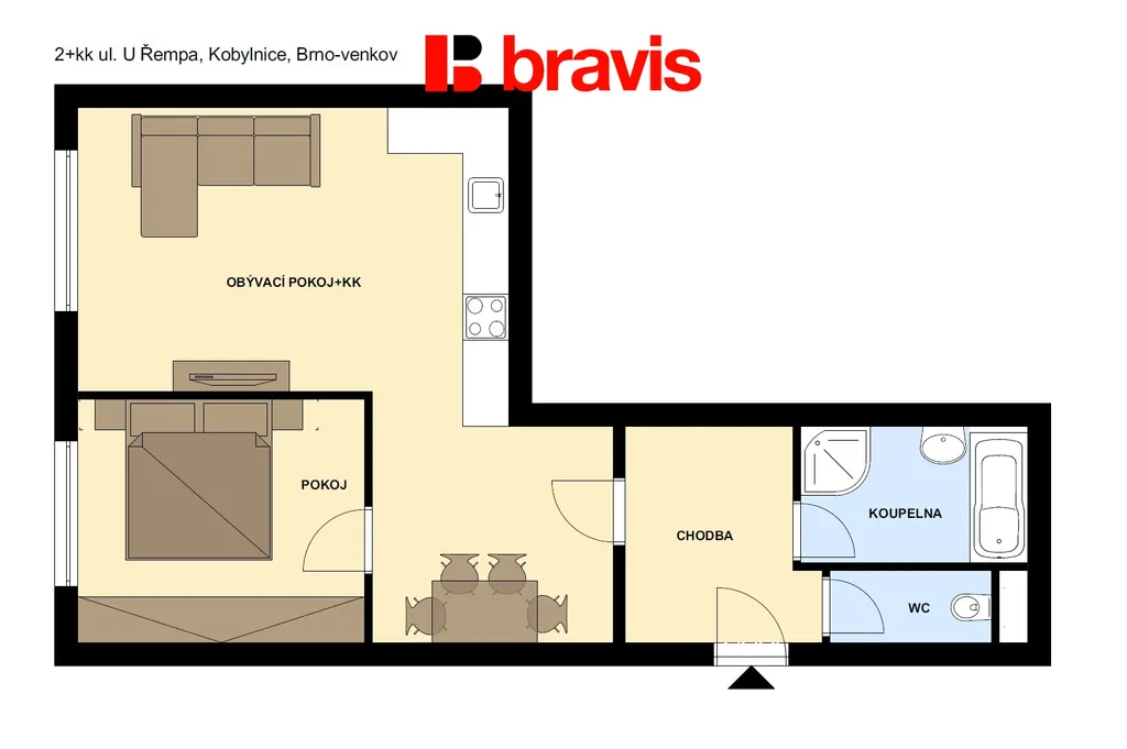 Ve výhradním zastoupení majitele nabízíme k pronájmu kompletně zařízený, slunný byt 2+kk s balkonem v obci Kobylnice na ulici U řempa.
