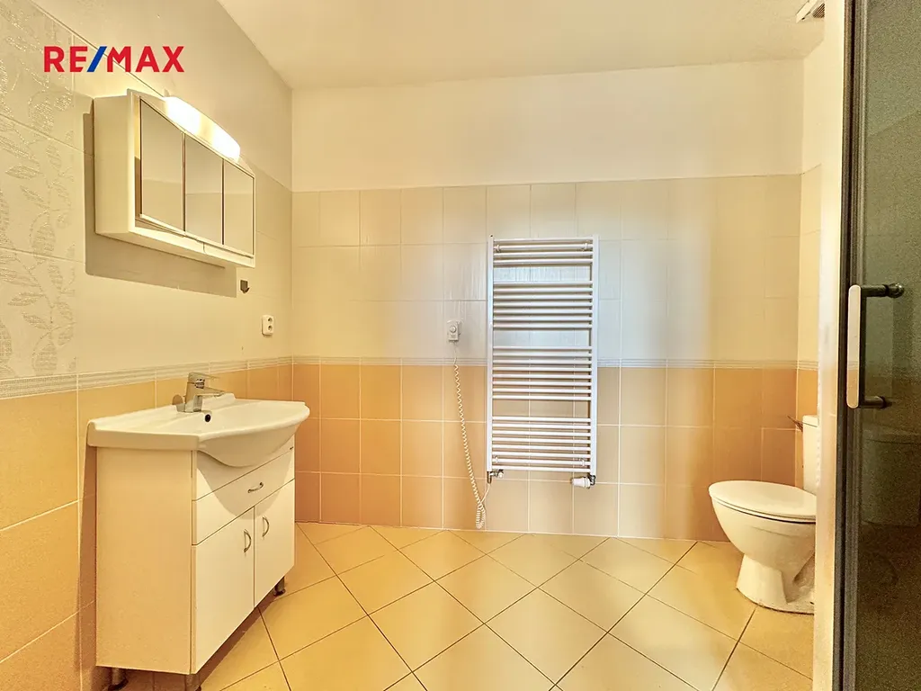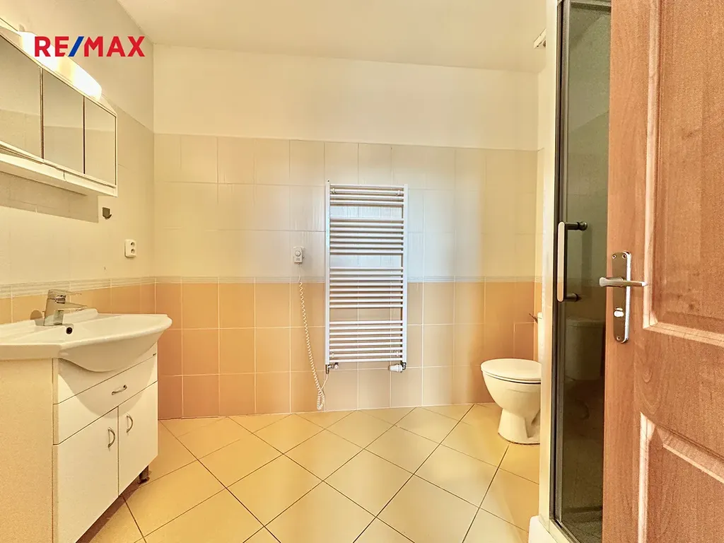 K dispozici je dále velká společná terasa na patře. Díky vlastní centrální kotelně pro dům s automatickým kotlem na pelety má bytová jednotka příznivé provozní náklady.