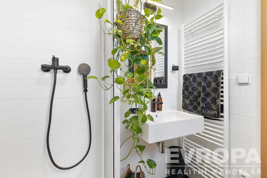 Vytápění zajišťuje kombinace elektrického podlahového topení v přízemí a radiátorů v ostatních místnostech, doplněné moderním tepelným čerpadlem Viessmann Vitocal 200. Dům je napojen na obecní vodovod i kanalizaci. Dešťová voda ze střechy je svedena do dvou retenčních jímek s možností využití pro závlahu zahrady.