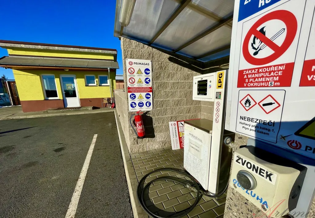 Čerpaní stanice se nabízí včetně technologie (výdejní stojan, tři skladovací nádrže na LPG), zařízení + vybavení viz fotografie a nachází se na vlastním pozemku. Na ostatní - travnaté ploše, byl založen sad ovocných stromů. Součástí prodeje je zateplená maringotka, sloužící jako technické zázemí. Celý objekt je oplocen a monitorován kamerovým systémem.