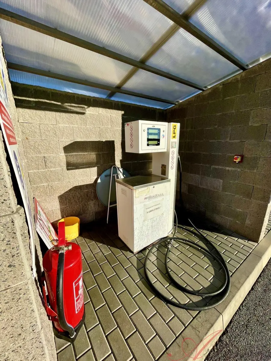 Čerpaní stanice se nabízí včetně technologie (výdejní stojan, tři skladovací nádrže na LPG), zařízení + vybavení viz fotografie a nachází se na vlastním pozemku. Na ostatní - travnaté ploše, byl založen sad ovocných stromů. Součástí prodeje je zateplená maringotka, sloužící jako technické zázemí. Celý objekt je oplocen a monitorován kamerovým systémem.