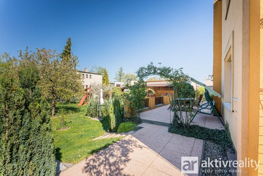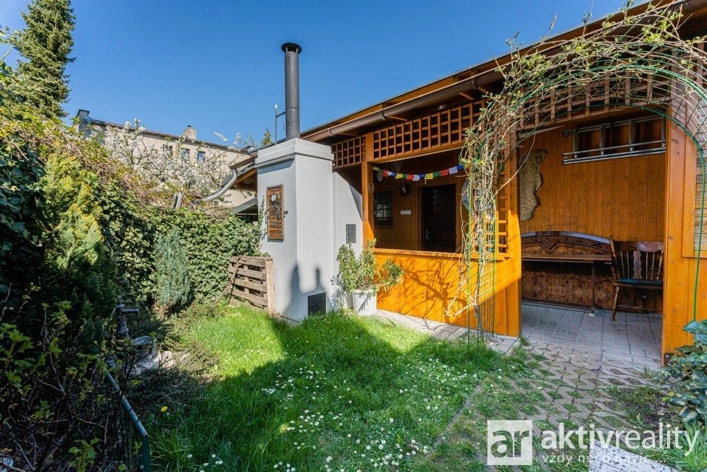 Zahrada a relaxace - Nájemníci mohou využívat velkou společnou zahradu velko cca 620 m2 s terasou a stylovou udírnou, což je ideální pro rodinné grilování nebo odpočinek.
