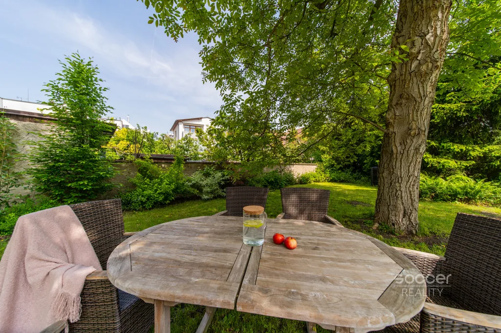 Celá nemovitost je po velmi zdařilé a vkusné rekonstrukci, zachovává vzácné původní prvky, důraz je kladen na celkovou souhru s jedinečnými designovými detaily. Samotný byt je plně zařízený a nabídne vám velký obývací pokoj s vybaveným kuchyňským koutem a krbovými kamny. Další pokoj je neprůchozí a budete z něho mít výhled do udržované zahrady, stejně jako z ložnice s velkým francouzským oknem. Dvě prostorné koupelny vám umožní volbu mezi sprchovým koutem a vanou. Interiér je světlý a vzdušný a budete mít navíc možnost pobývat v soukromí zahrady náležející k vile.