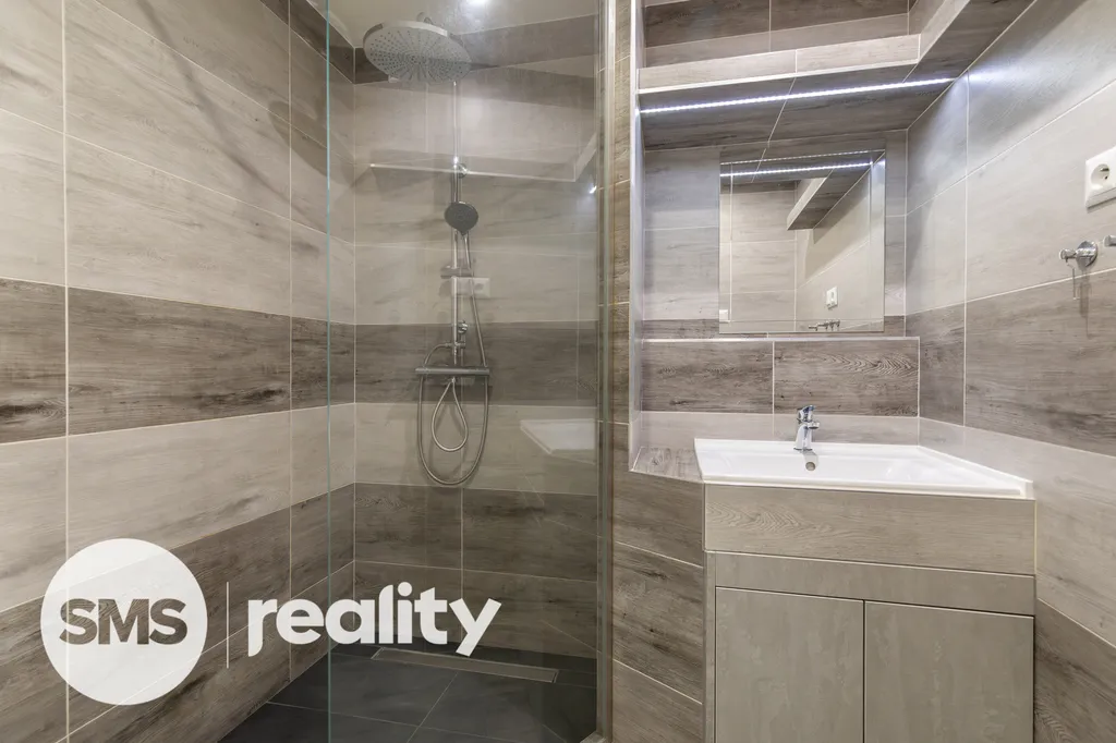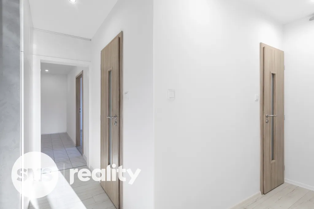 Interiér je ve výborném stavu a má řadu úprav, které u panelových bytů nejsou samozřejmostí: elektřina v mědi, nové omítky v celém bytě, plovoucí podlahy, dlažba v předsíni a navíc stylový detail v podobě dekorativních šedých omítek v chodbě. Samozřejmostí je LED osvětlení v celém bytě, které dodává prostoru moderní a čistý dojem.