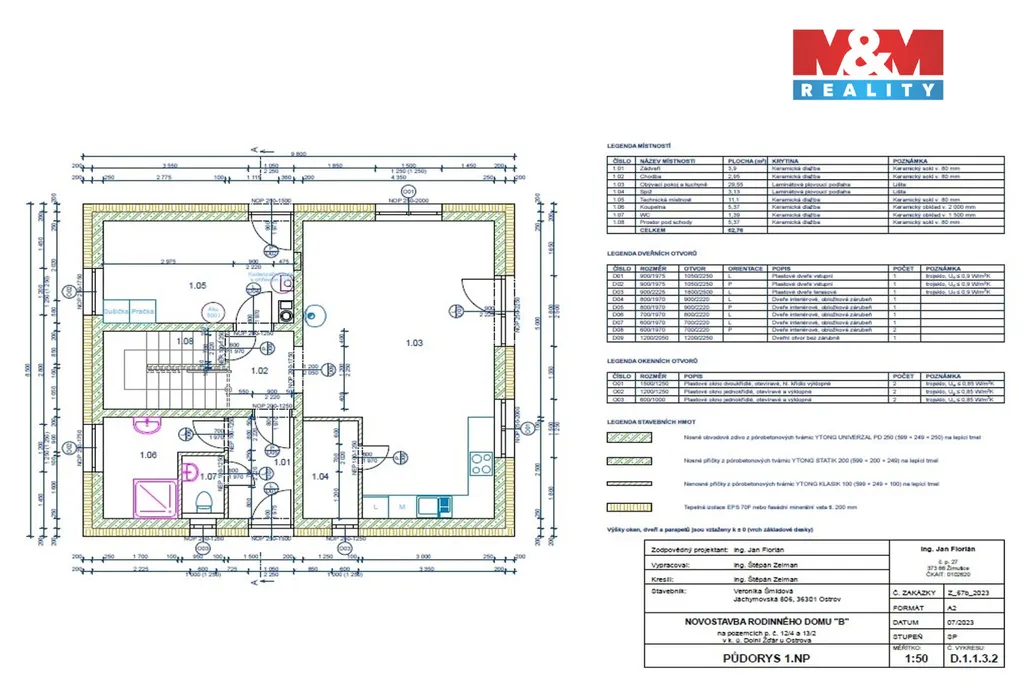 Dům má zastavěnou plochu 83 m² a je navržen jako dvoupodlažní objekt s plánovanou dispozicí 4+kk, která počítá s komfortním rodinným bydlením. Součástí návrhu je také velká technická místnost, poskytující dostatek prostoru pro technologie domu i praktické zázemí. Celková užitná plocha činí 121 m². Dispoziční řešení je však možné upravit dle vlastních představ, což dává budoucímu majiteli maximální flexibilitu při dokončení stavby.