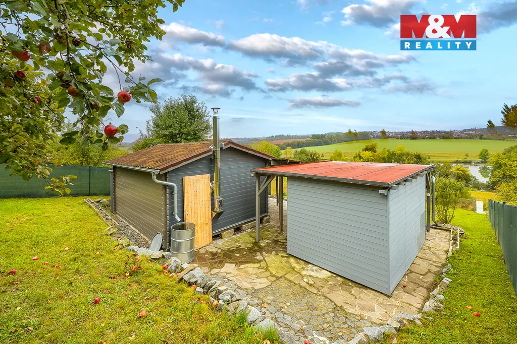 Na prodej nabízíme útulnou chatu zasazenou do svahu zahrady (608 m²) s nádherným výhledem do okolní krajiny.