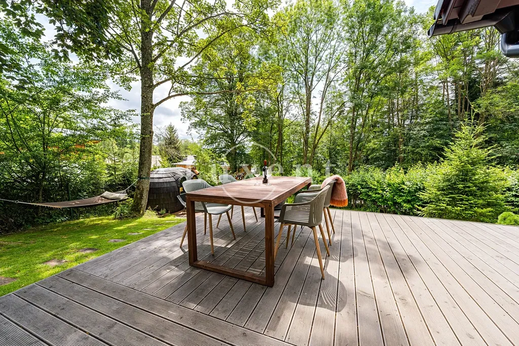 Nabízíme v exkluzivním zastoupení velkorysý srub v tichu lesa v Lipně nad Vltavou. Na pozemku o velikosti 1.073 m² je k dispozici srub 3+kk, sauna, venkovní kuchyně a parkovací stání. Nemovitost se nachází jen minuty od pláží Lipna, kde je k ní v Marině zakoupené kotviště.Podlahová plocha činí 86,4 m² plus 74 m² teras, na zahradě (967 m²) je stylová sauna, venkovní kuchyně a vířivka. Nemovitost stojí v klidu a tichu zalesněné oblasti a nabízí plné soukromí a pohodlí pro bydlení i druhý domov v příjemném zázemí pro život v přírodě, nedotčené turistickým ruchem ruchu, přitom kousek od pláží i centra města.