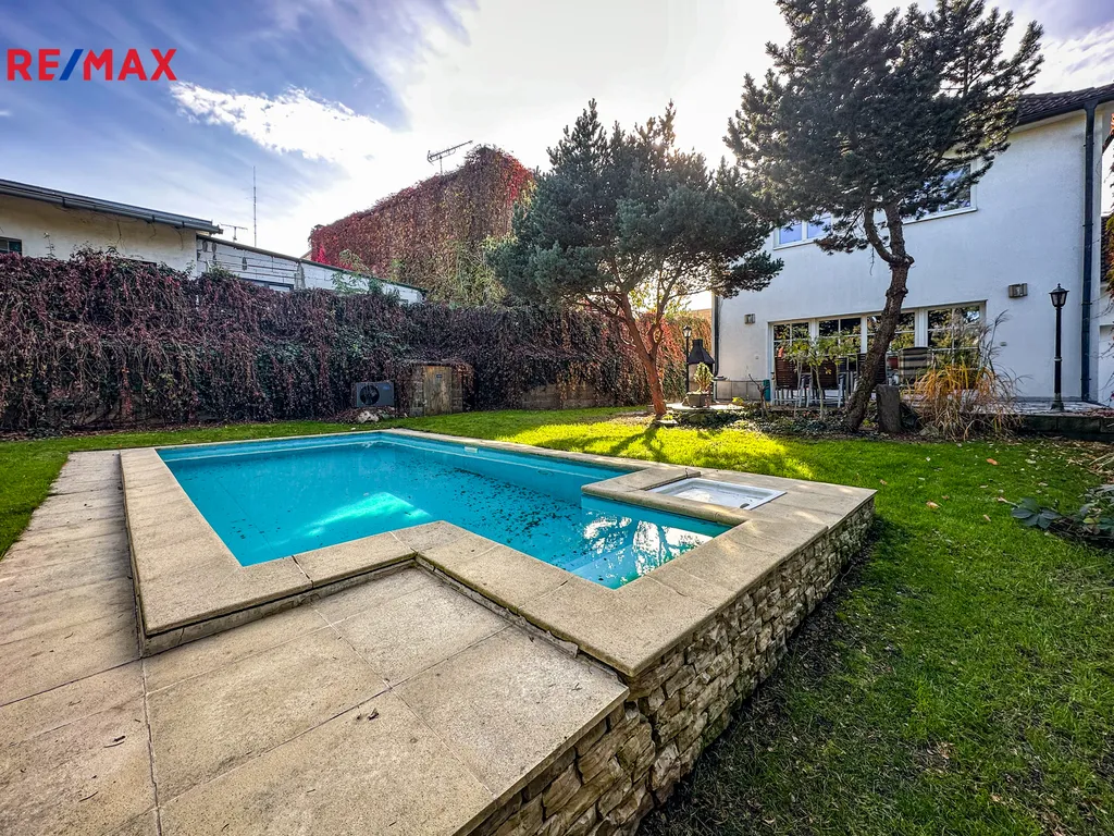 Zahrada poskytuje klidné soukromí a dostatek prostoru pro odpočinek i zábavu. Najdete zde vyhřívaný bazén s tepelným čerpadlem, zahradní altán a dvě terasová posezení. Součástí domu je garáž pro dvě auta.