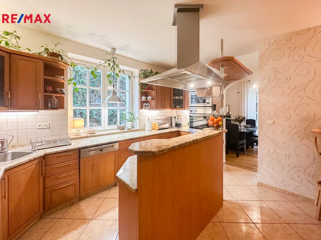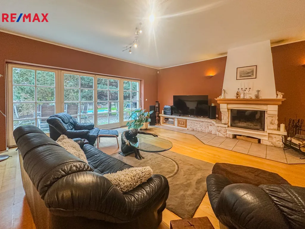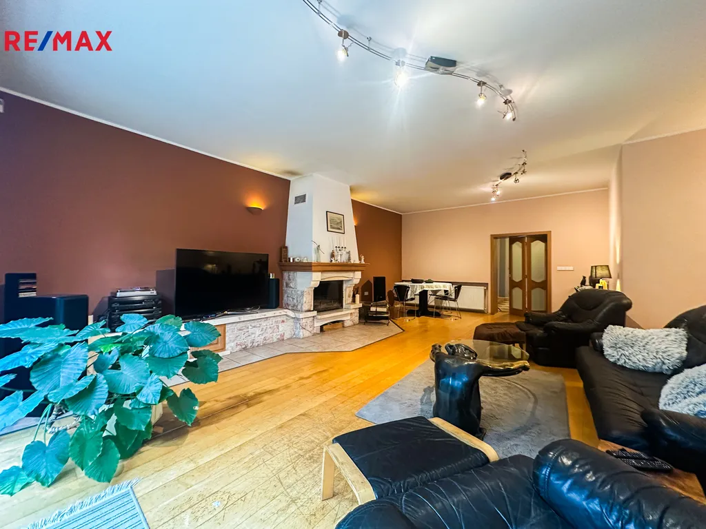 V přízemí se nachází prostorná vstupní hala se schodištěm do patra. Reprezentativní obývací pokoj se zděným krbem plynule navazuje na terasu orientovanou do zahrady. Kuchyně je vybavena moderními spotřebiči Miele a mramorovou pracovní deskou, a je propojena s jídelnou, kde nechybí ani stylový barový kout pro příjemná setkání s rodinou či přáteli.