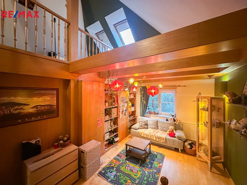 V prvním patře najdete hlavní ložnici se soukromou koupelnou a šatnou, která nabízí vysoký standard soukromí. Dále jsou zde dva prostorné dětské pokoje, z nichž jeden je řešen jako mezonetový, a mají k dispozici vlastní koupelnu i šatnu. Součástí patra je také pracovní kout a vstup na balkón s výhledem.